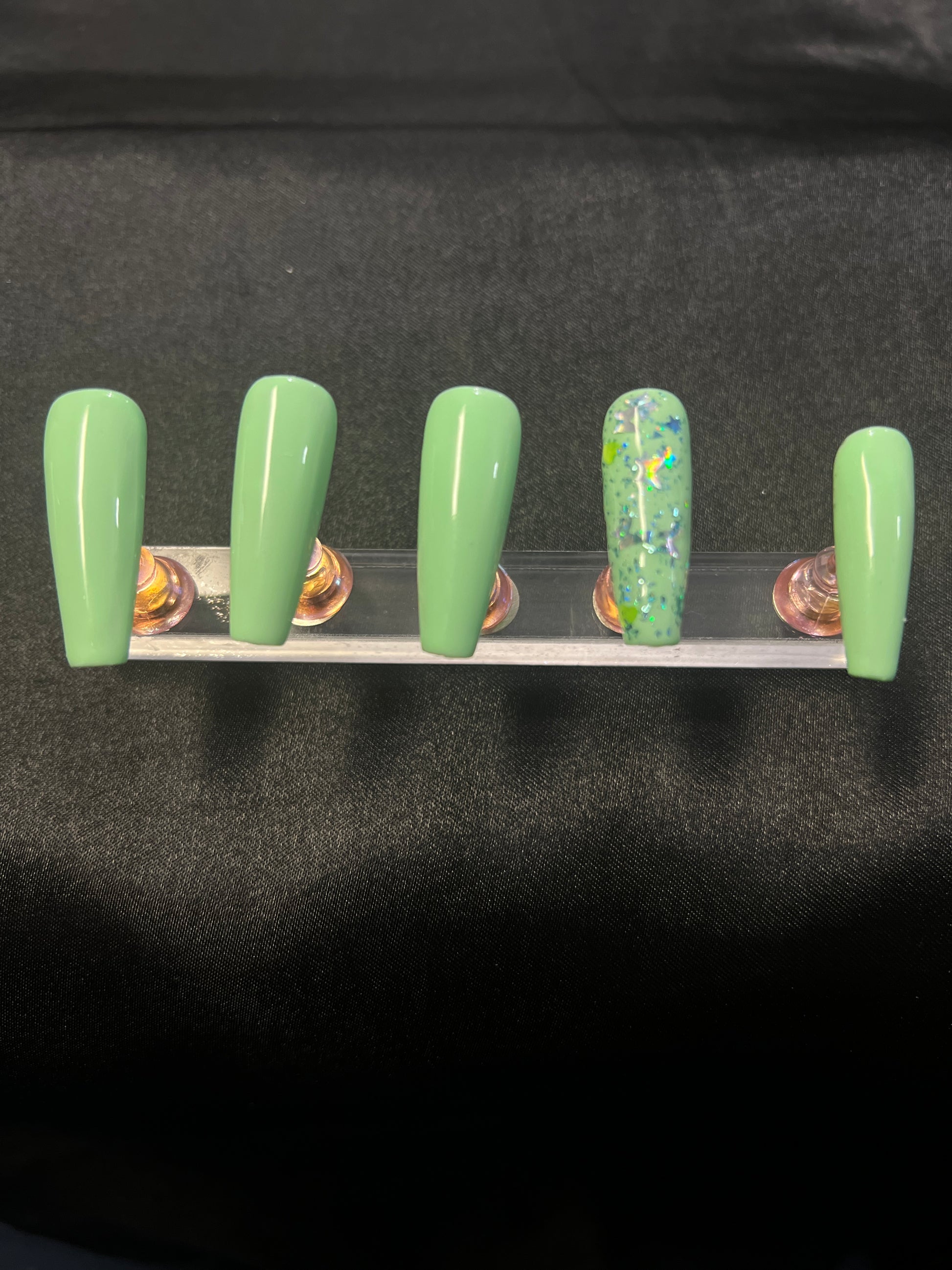 This soft green set brings fresh spring energy with one iridescent glitter accent that catches the light like pixie dust. Minimalist, magical, and effortlessly cute.